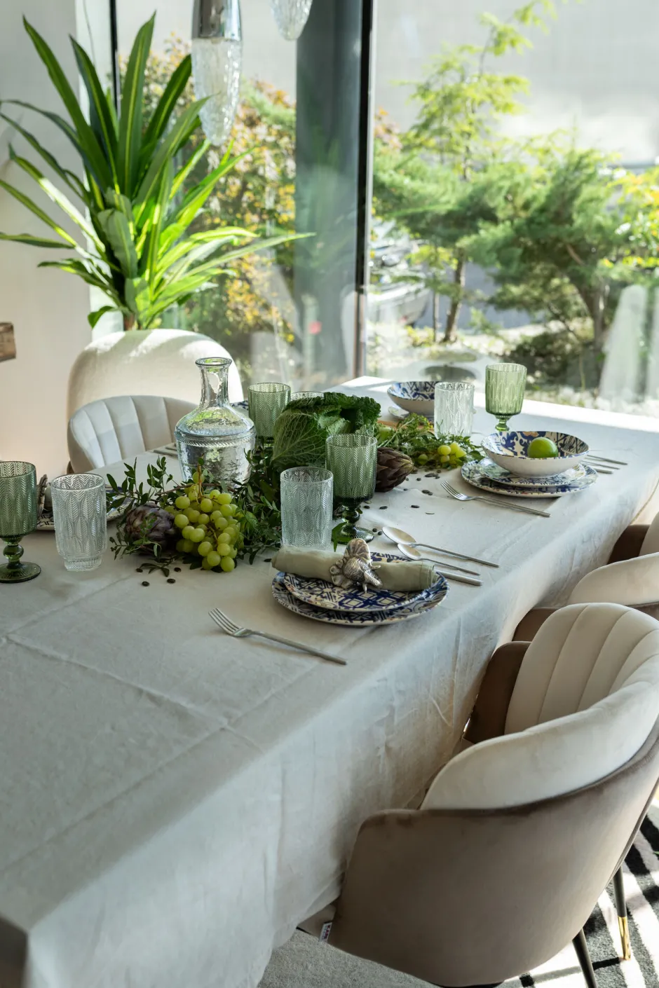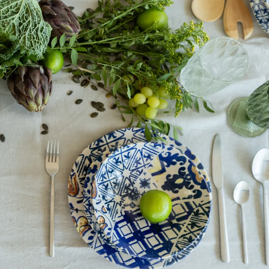 - Mixen Sie einfach den gemusterten Teller mit farblich passendem Geschirr