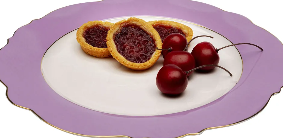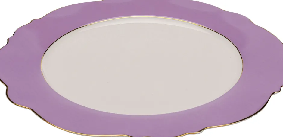 - Begeistert auf jedem Esstisch durch seine klassische Form und den Rand in zartem Lila