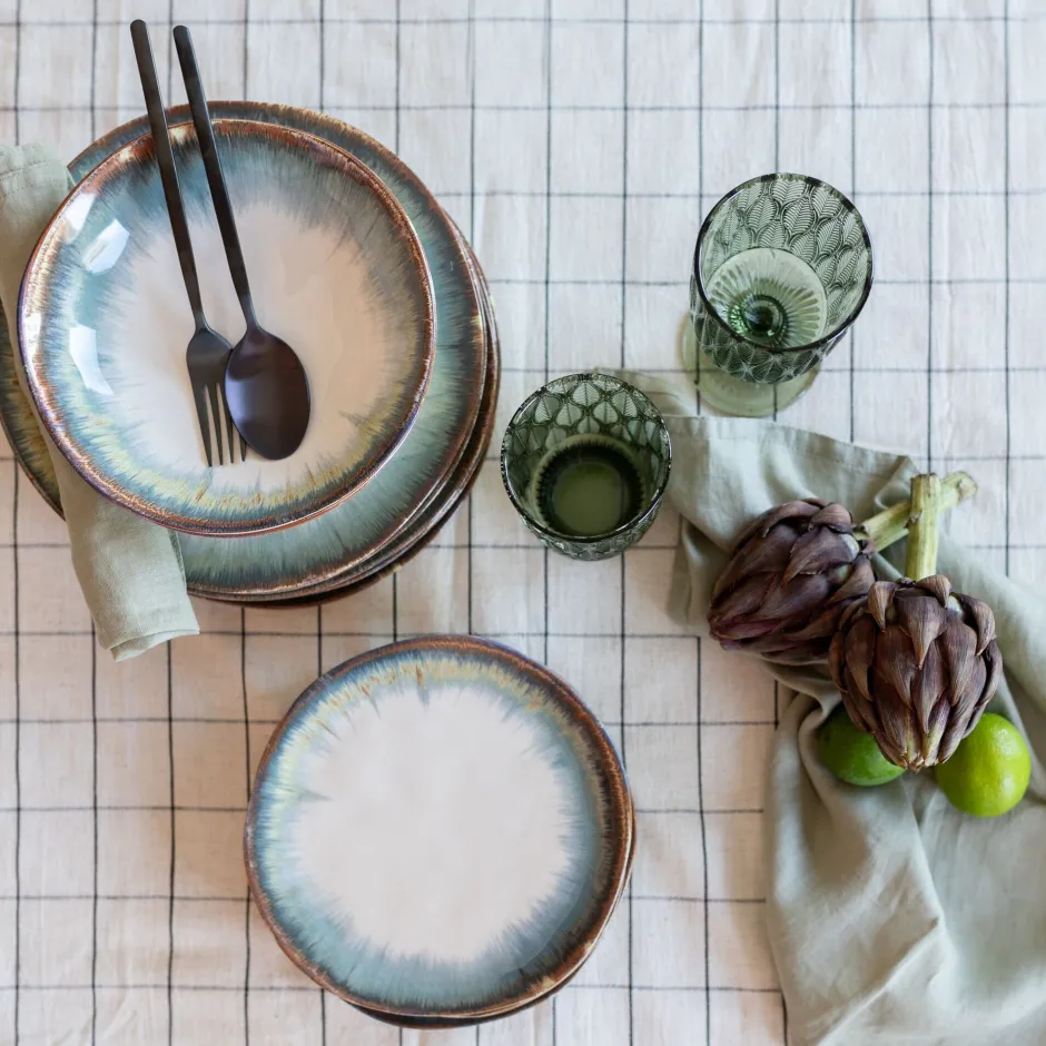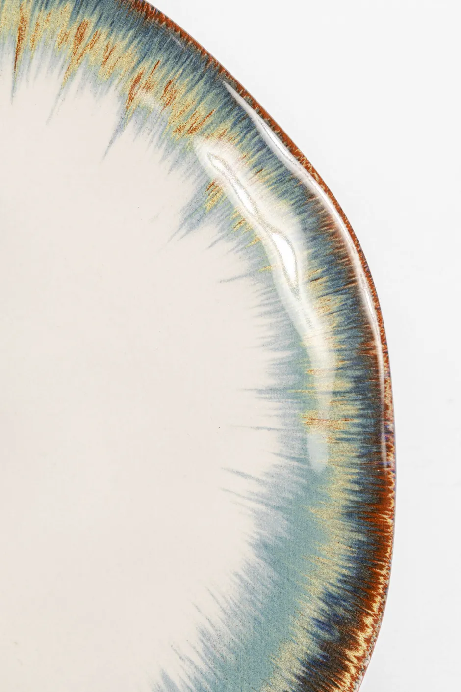 - Kleiner Teller aus Steingut in Creme-Weiß, Blau und Braun, 20 x 20.6 x 2 Zentimeter (H/B/T)