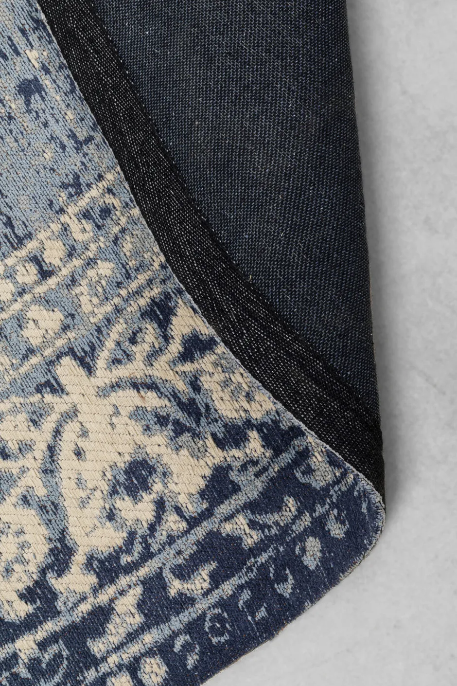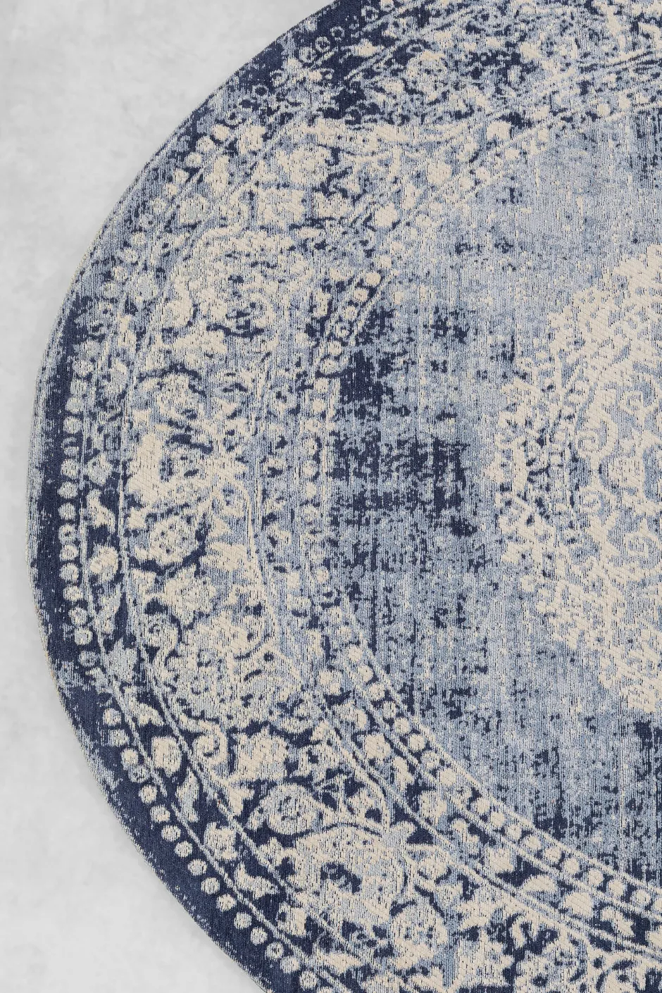 - Teppich im Vintage-Stil mit Muster in Creme und Blau mit gewollten Auswaschungen