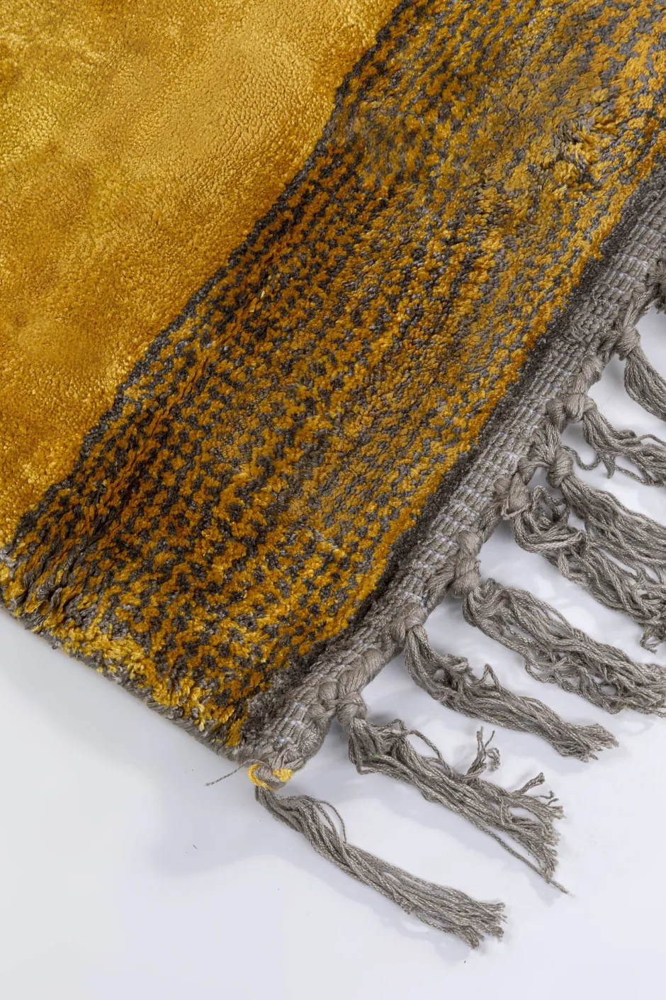 - Rechteckiger Web-Teppich in der angesagten Gewürzfarbe Curry mit dezenten Kontraststreifen am schmalen Rand und Fransen in Grau