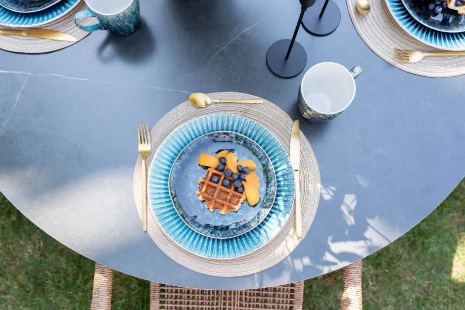 - Dieser Esstisch ist einsetzbar als Gartenmöbel genauso wie für den Innenbereich