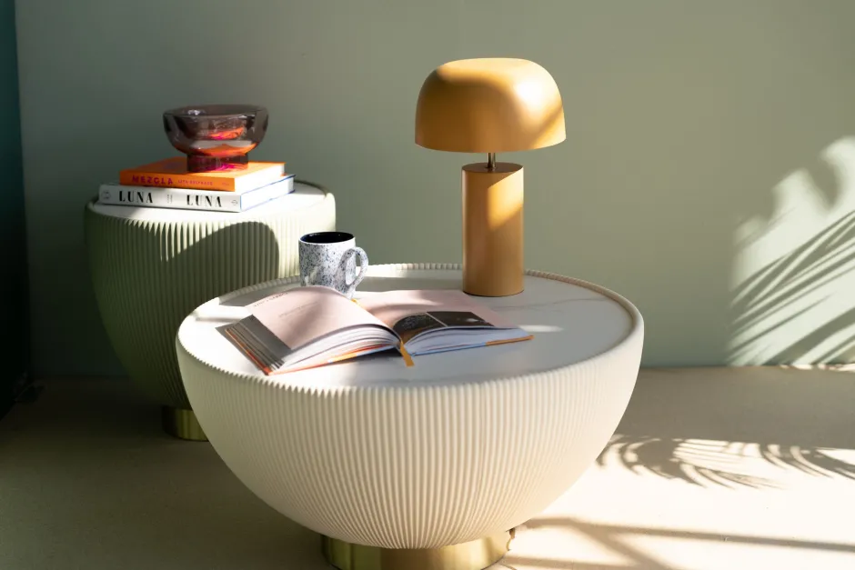 - Diese Pilzlampe in Curry-Gelb steht für modernes und zeitlos schönes Leuchten Design