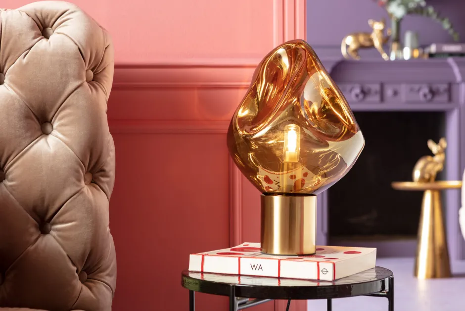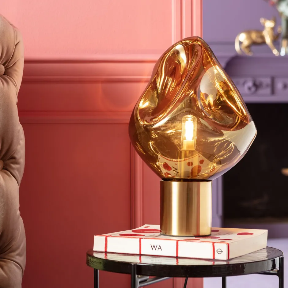 - Tischleuchte aus Glas: Reflektiert ihre Lichtquelle im Inneren und spiegelt die Umgebung facettenreich wider