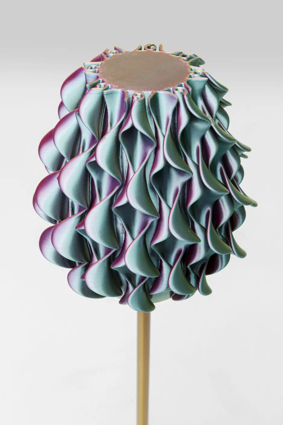 - Der Lampenschirm begeistert mit seiner außergewöhnlichen Form und schimmert je nach Lichteinfall in bunten Farben