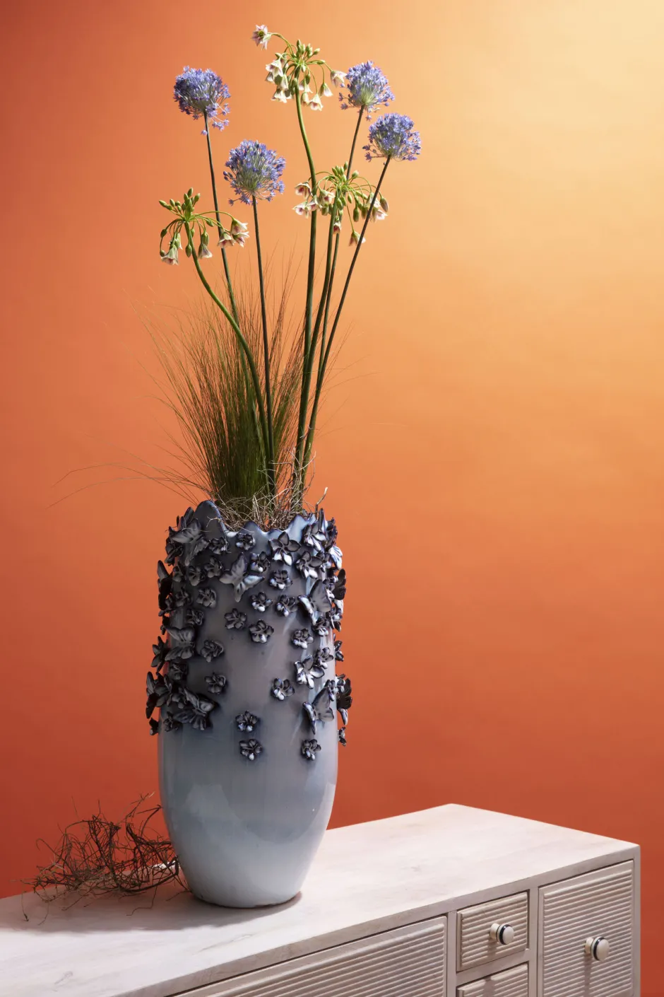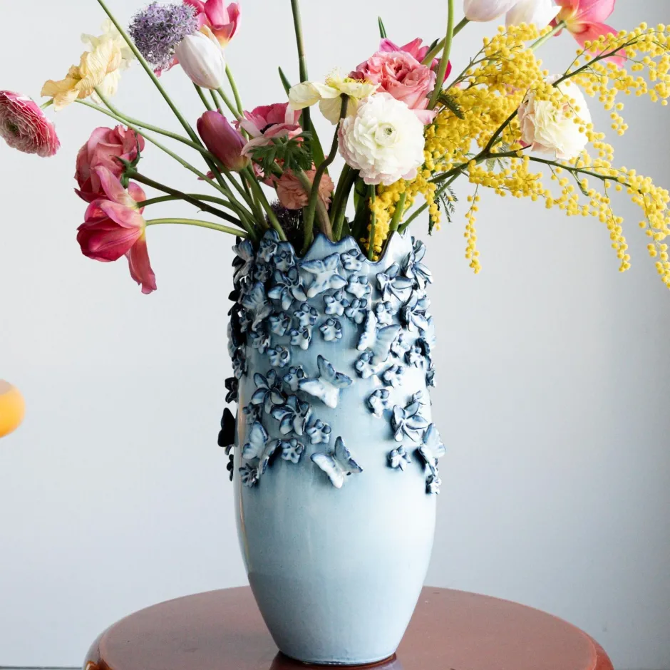 Vase Butterflies Lightblue 50cm