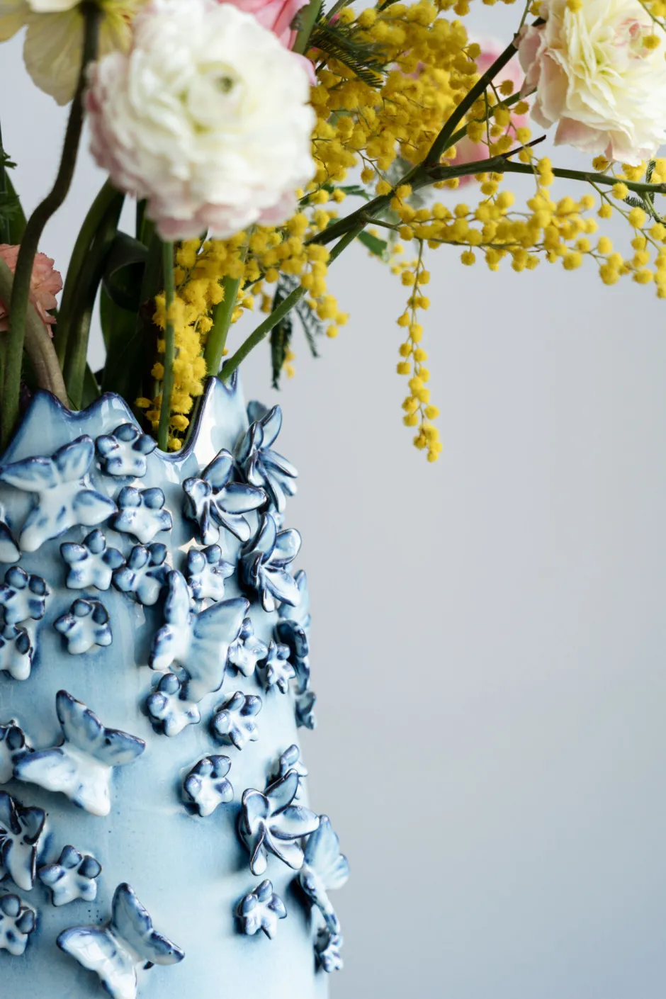 - Traumhafte Deko-Vase in frischem hellblau und Schmetterlingen als hübsche Verzierung