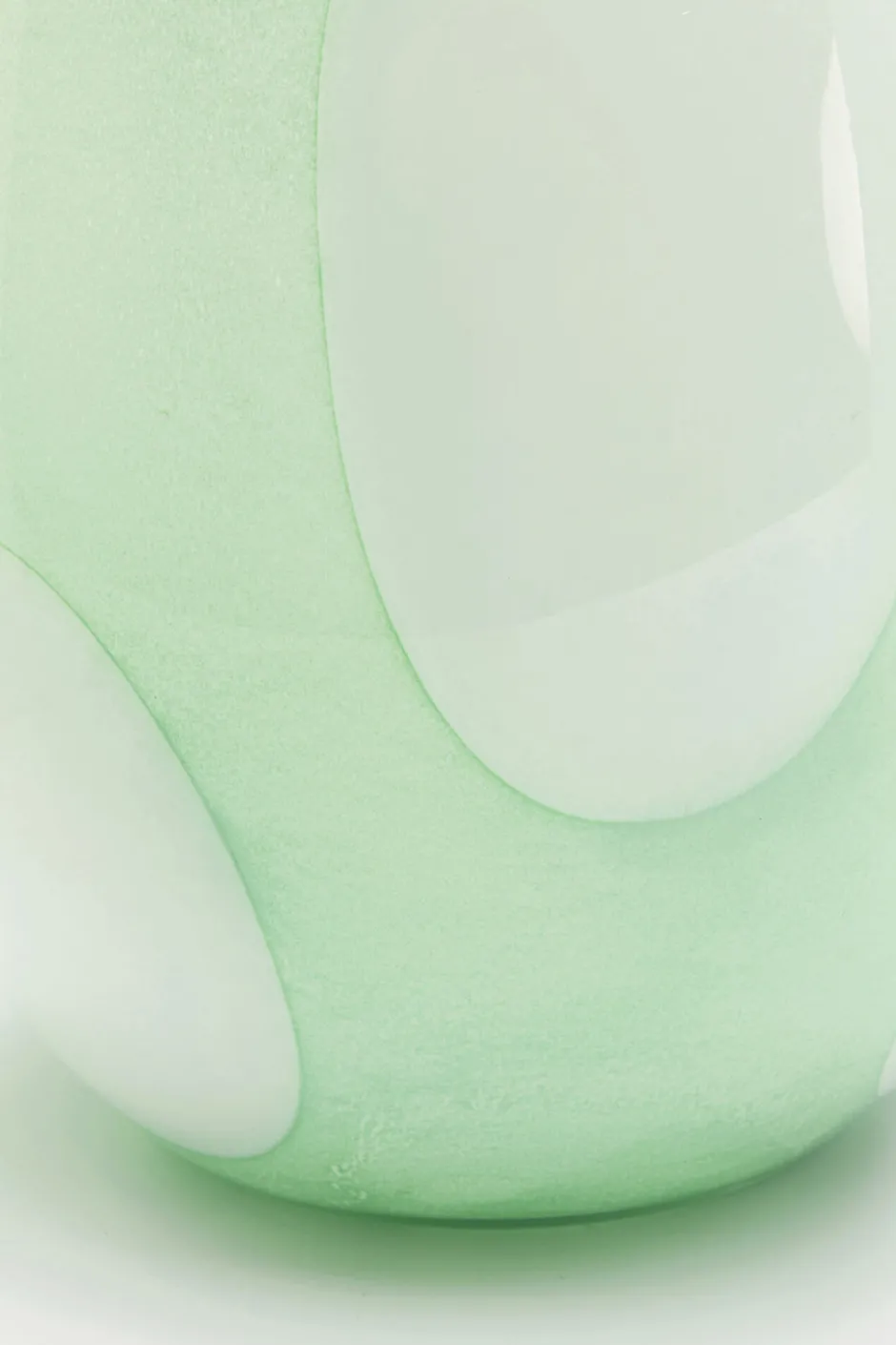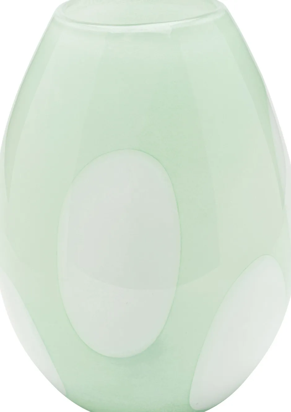 - In einem erfrischenden Pastellgrün mit weißen Akzenten und dank der abgerundeten Form setzt die Vase stilvolle Akzente