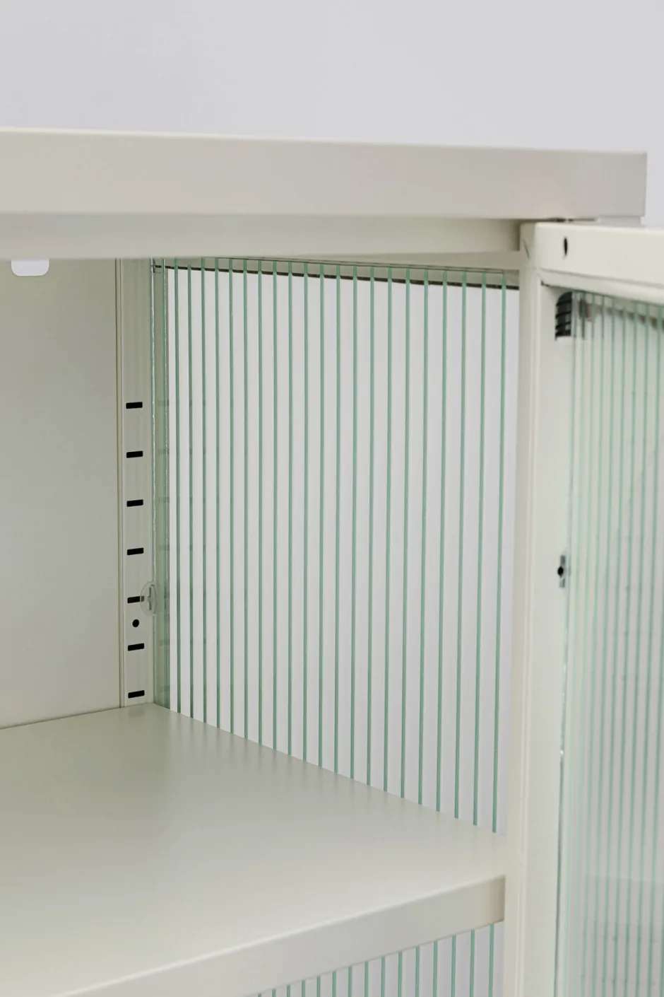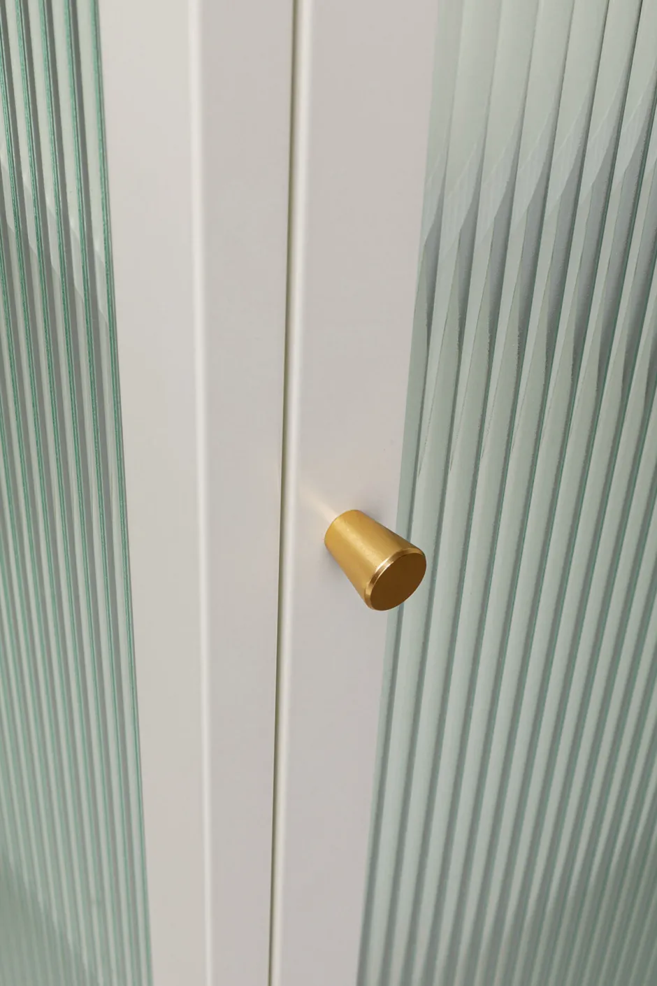 - Harmonische Elemente aus geriffeltem Glas und goldene Griffe verleihen dem Design einen stilvollen Charakter