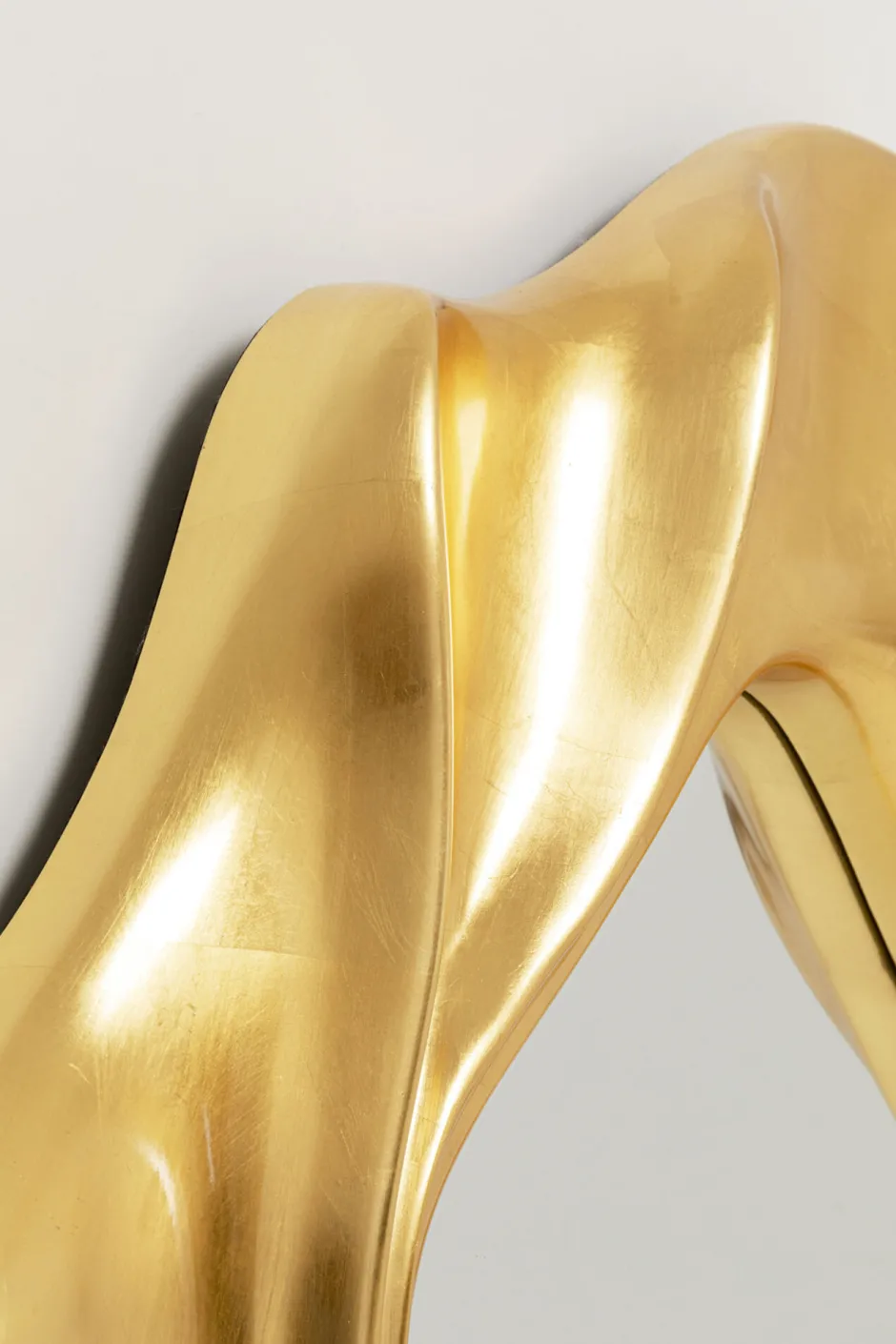 - Der Spiegel begeistert mit seinem auffälligen Rahmen in dynamischer Form und mattem Gold